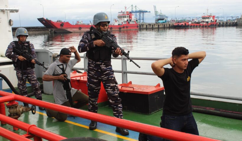 TNI AL, Makassar, ibukotanews.com. — Dalam rangka meningkatkan kemampuan tempur, Prajurit Satuan Lintas Laut Militer (Satlinlamil) 3 melaksanakan Latihan praktek Visit Board Search and Seizure…