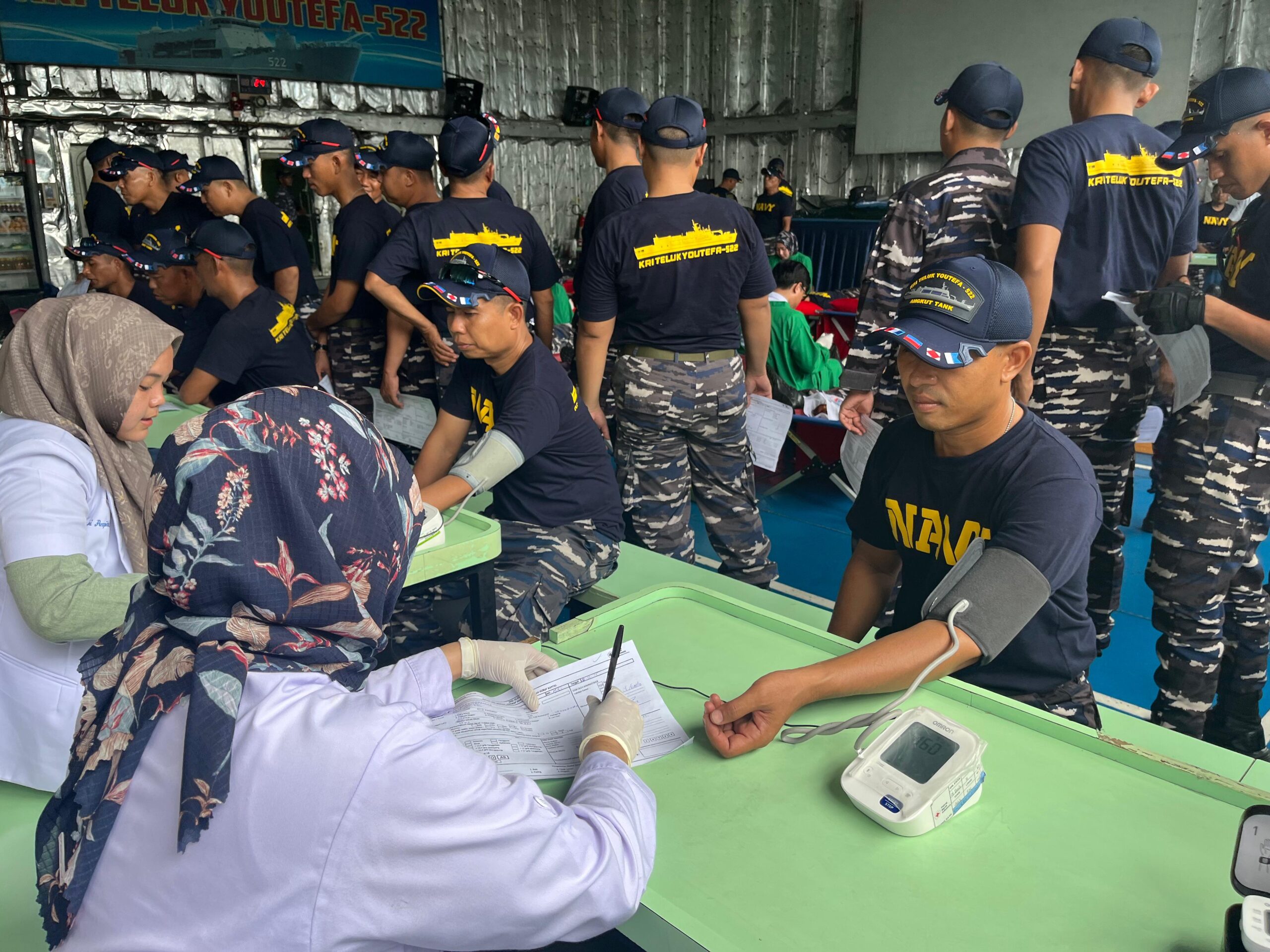 Berita Kolinlamil TNI AL, ibukotanews.com. — Dalam rangka mempererat rasa kepedulian sosial dan kemanusiaan, KRI Teluk Youtefa-522 menggelar kegiatan Bhakti Sosial Donor Darah bekerja sama dengan Palang Merah Indonesia (PMI) Kota Makassar, pada Senin (10/11). Kegiatan kemanusiaan ini berlangsung di Hanggar Heli KRI Teluk Youtefa-522 yang tengah bersandar di Pelabuhan Makassar.