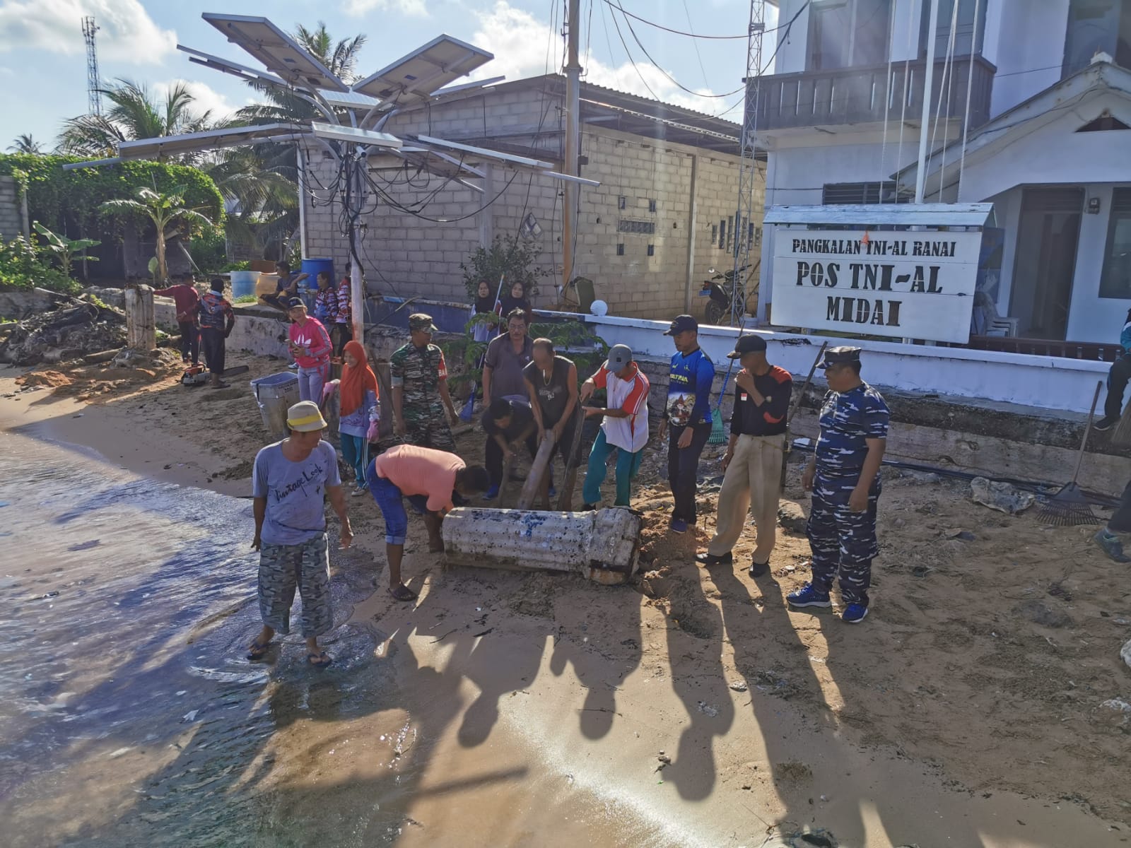 Dalam memasuki perubahan cuaca musim utara di Pulau Midai, Komandan Posal Midai Kapten Laut (P) Agus Haryanto mengajak berbagai elemen masyarakat di wilayah Kecamatan Midai untuk melakukan pembersihan di lokasi pantai.